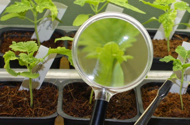 Pincett och förstorningsglas får ersätta sekatör och spade i trädgårdsarbetet. Jag har fått löss på mina sådder! Egentligen kanske man skulle slänga hela sk-n, men är man envis, som jag är, då ger man inte upp så lätt. Jag försöker utrota ohyran på mitt sätt. Och visst har det skett en stor förändring till det bättre, men fortfarande, efter ett par veckor, dyker det upp en och annan lus. Nu har de i varje fall nästan helt övergett Sommarlejonöronen men tyvärr hittat nya jaktmarker bland Heliotropen.